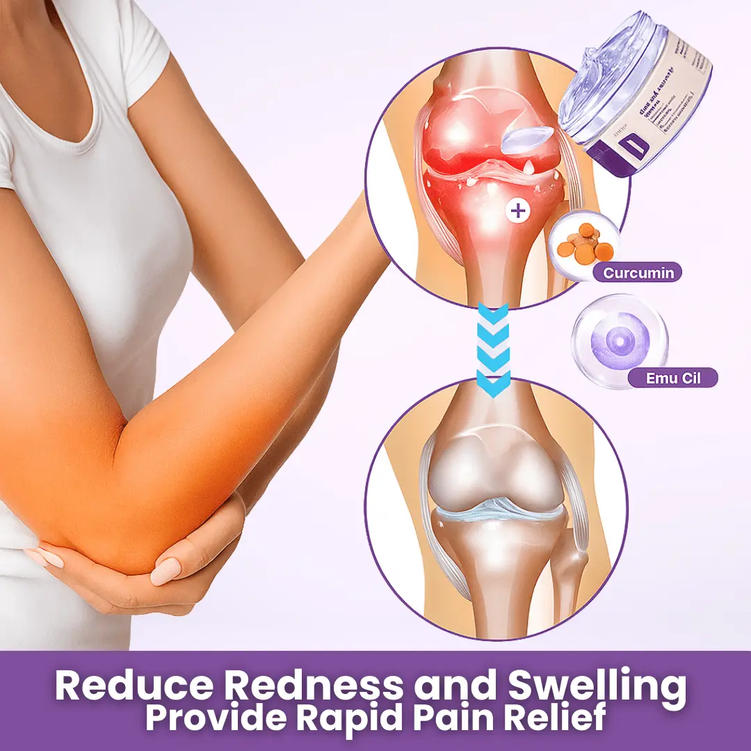 The turmeric in the gel contains curcumin, a potent anti-inflammatory compound that helps reduce swelling, pain, and redness in affected joints. Emu oil, known for its deep penetration, works with turmeric to soothe and calm inflammation, providing fast and effective pain relief.