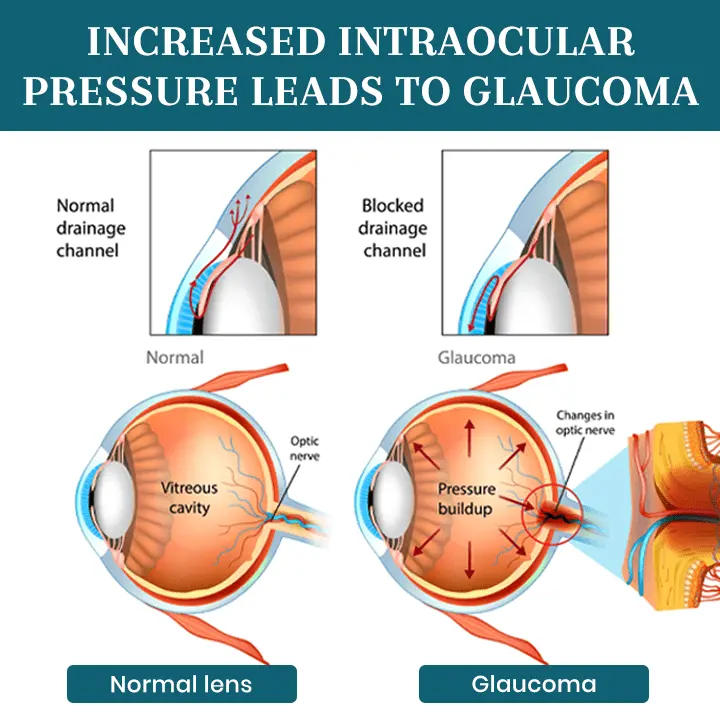 Glaucoma: Excessive eye pressure compresses the optic nerve, gradually narrowing the visual field — if untreated, it can cause permanent blindness.